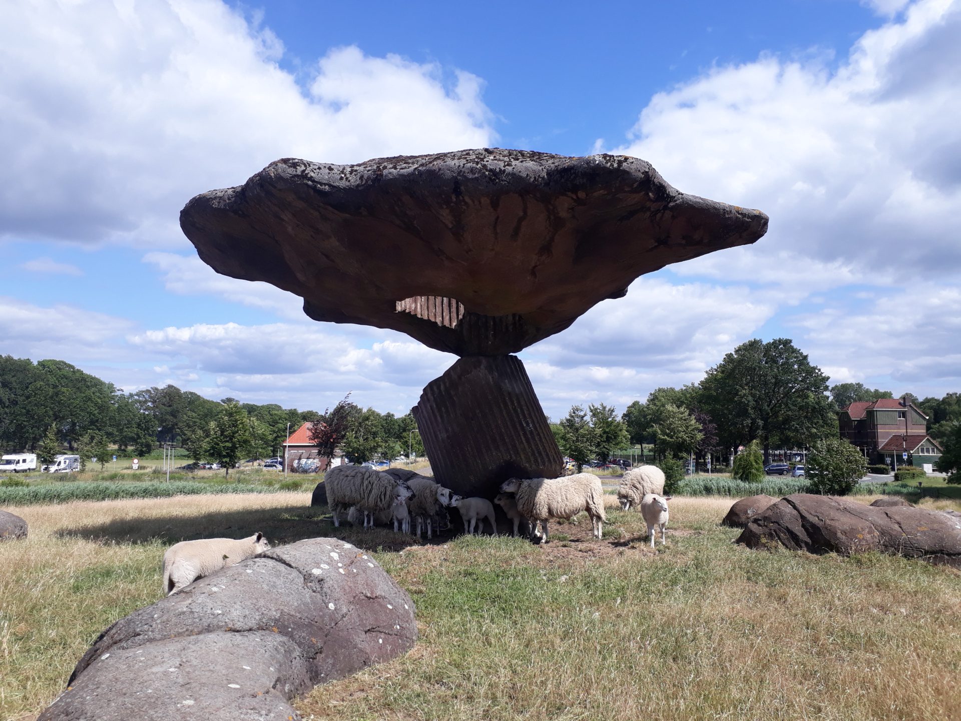 Dalfsen is altijd een dorp gebleven. Opmerkelijk is zwevende platte steen, die balanceert op een smal voetstuk. Tijdens warme dagen biedt de steen voldoende schaduw voor een aanzienlijk aantal schapen. Het rustieke stationnetje biedt een voorziening dat ieder station zou moeten bieden: een sfeervol restaurant met terras op het perron. Lijkt uitstekend einde van een fietstocht. Onze rit gaat echter nog verder.