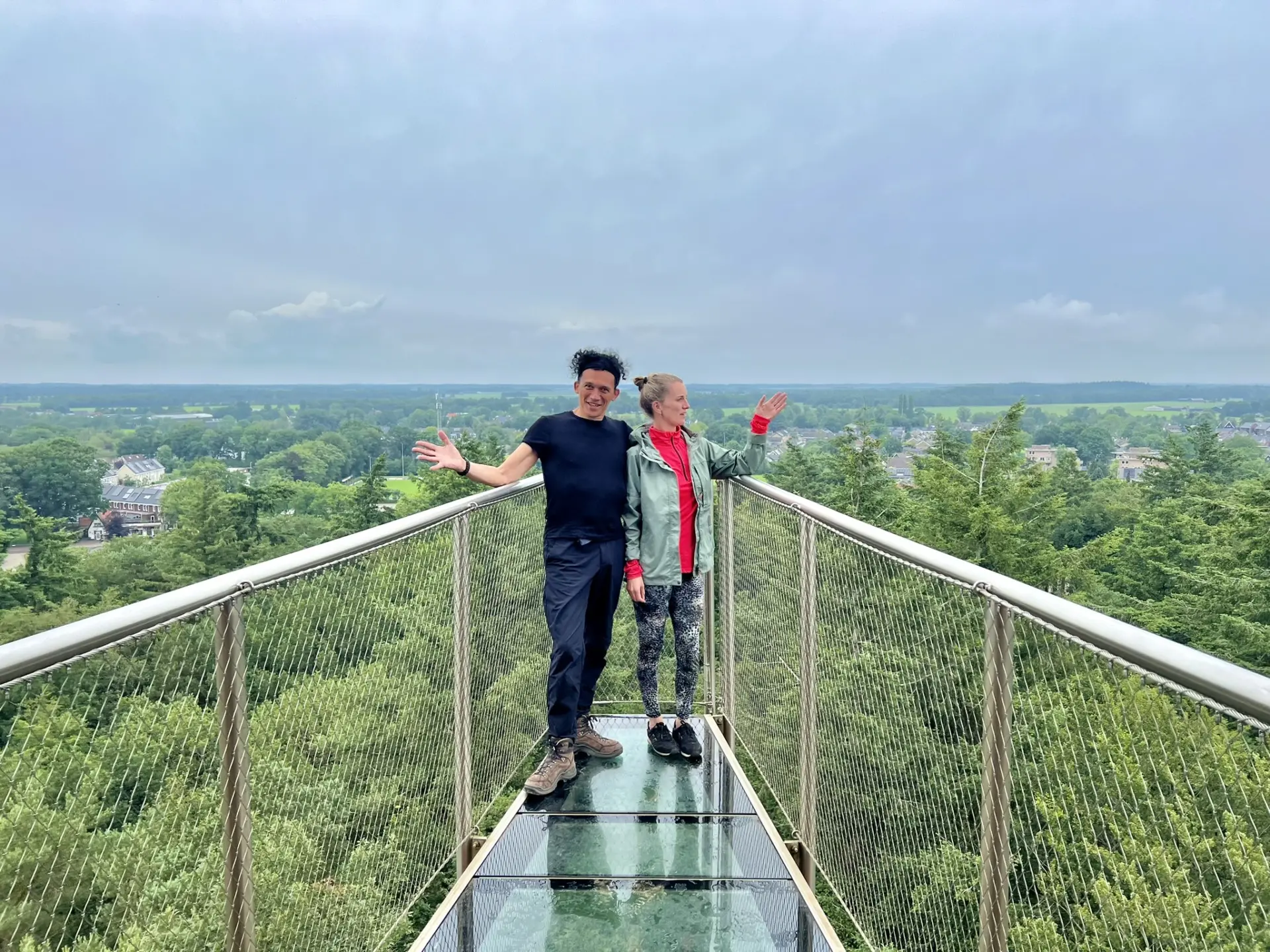 Nog helemaal enthousiast van het klimbos zijn we nog niet klaar voor vandaag. Voor een prachtig uitzicht én wat extra adrenaline beklimmen we de Bosbergtoren. Deze iconische toren biedt een adembenemend uitzicht over het Nationaal Park Drents-Friese Wold en de verdere wijde omgeving. We lopen rond op het hoogste niveau van de toren en zien in op de plaatjes bij de uitzichtpunten wat we in de verte kunnen zien. Of nou ja, als de zon had geschenen dan. Met 33 meter hoogte is het de hoogste uitkijktoren van Friesland.