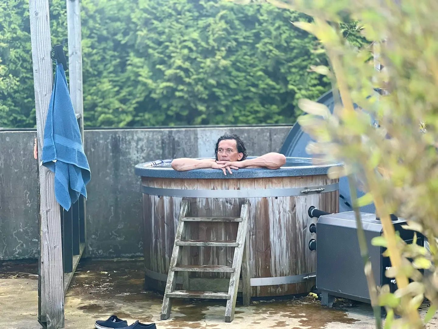 Daarna was het tijd voor ontspanning. Er stond een heerlijk barbecuepakket voor ons klaar en een barbecue op ons eigen terras. Ik bestelde de vegetarische variant en dat is wat mij betreft een absolute aanrader! Vaak betekent vega BBQ dat je vegetarische burgers en andere vleesvervangers op je bord krijgt. Een leuke poging, maar laten we eerlijk zijn: echt heel lekker is het niet. Dat is hier wel anders! Heerlijke verse groentespiezen, gevulde paprika, een courgettebootje en meer. Het is allemaal fantastisch! Het vlees en de vis wordt overigens ook gewaardeerd door omnivoor Peter. Na het eten is de houtgestookte hottub die voor ons terras staat heerlijk warm en zien we de zon ondergaan vanuit het water.