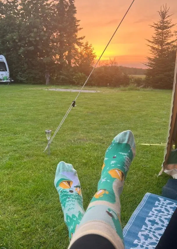 Na afloop gaan we naar onze volgende bestemming: Wijnjewoude. We komen daar aan het einde van de dag aan bij Camping Wijnjeterp. Ook hier worden we weer razend enthousiast ontvangen door eigenaren Erik en Riëtte. Zij zijn pas sinds dit jaar eigenaar van de (mini)camping, maar wat is het er nu al fijn! Je kunt natuurlijk met je eigen caravan, camper of tent komen, maar voor ons staat er een kant-en-klare heerlijk ruime tent klaar. Inclusief heerlijke matrasjes, dekbed, koffie en thee en stoeltjes. Er is sinds kort ook een chalet en een caravan beschikbaar voor mensen zonder eigen kampeermiddel, zoals wij, maar ook mensen die een meerdaagse fiets- of wandeltocht maken. We ontspannen met een drankje voor de tent en genieten van de zonsondergang.
