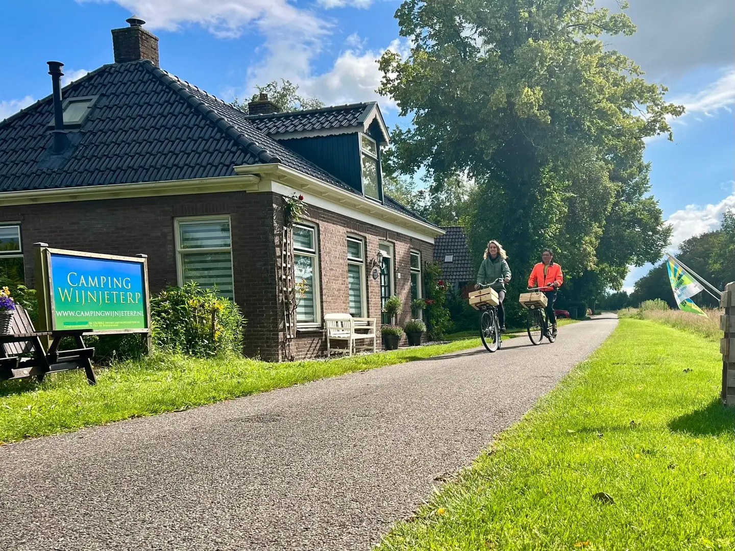 De camping ligt direct aan de Opsterlandse Compagnonsfeart, onderdeel van de Turfroute. De sluis Wijnjeterp ligt praktisch voor de deur, dus entertainment van bootjes gegarandeerd! Erik en Riëtte hebben enkele fietsen en kajaks te huur om de omgeving te verkennen. Dat laten we ons geen twee keer zeggen!