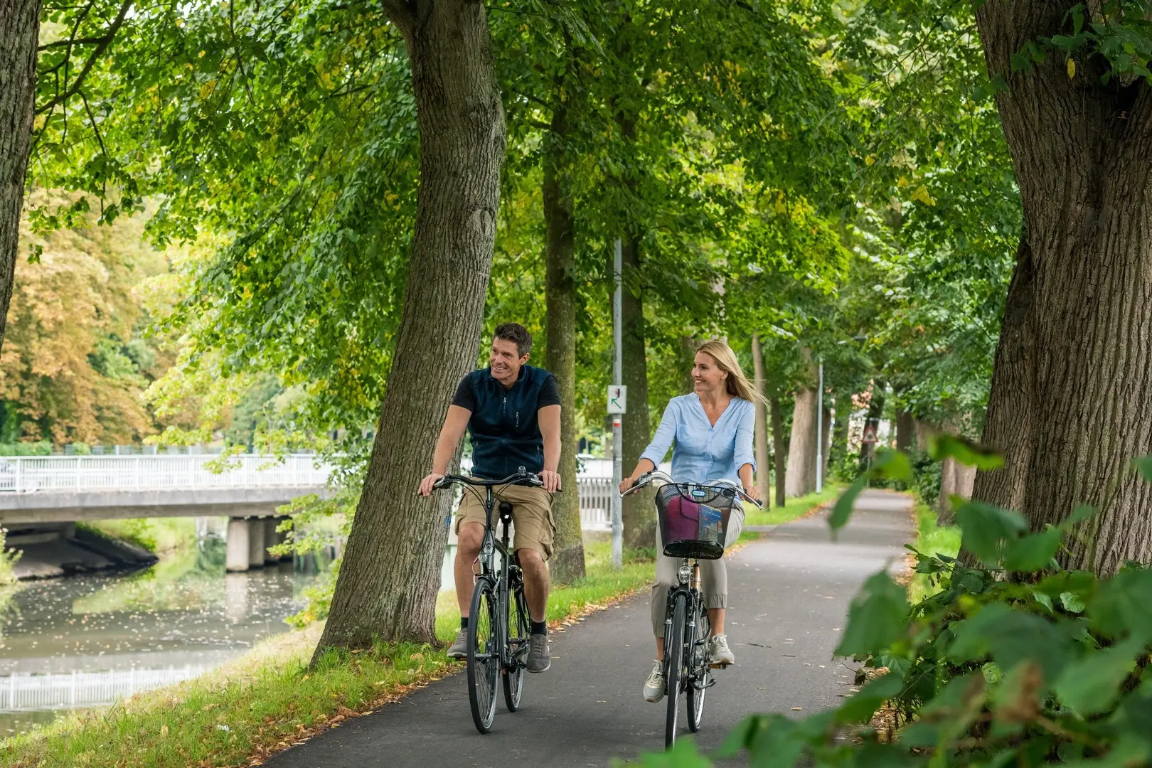 De fietspaden in Graafschap Bentheim zijn breed en rustig, en sluiten naadloos aan op het Nederlandse fietsknooppuntensysteem. Dankzij de speciale Fietsbus hoef je zelfs geen rondje te maken: je laat je gewoon terugbrengen.