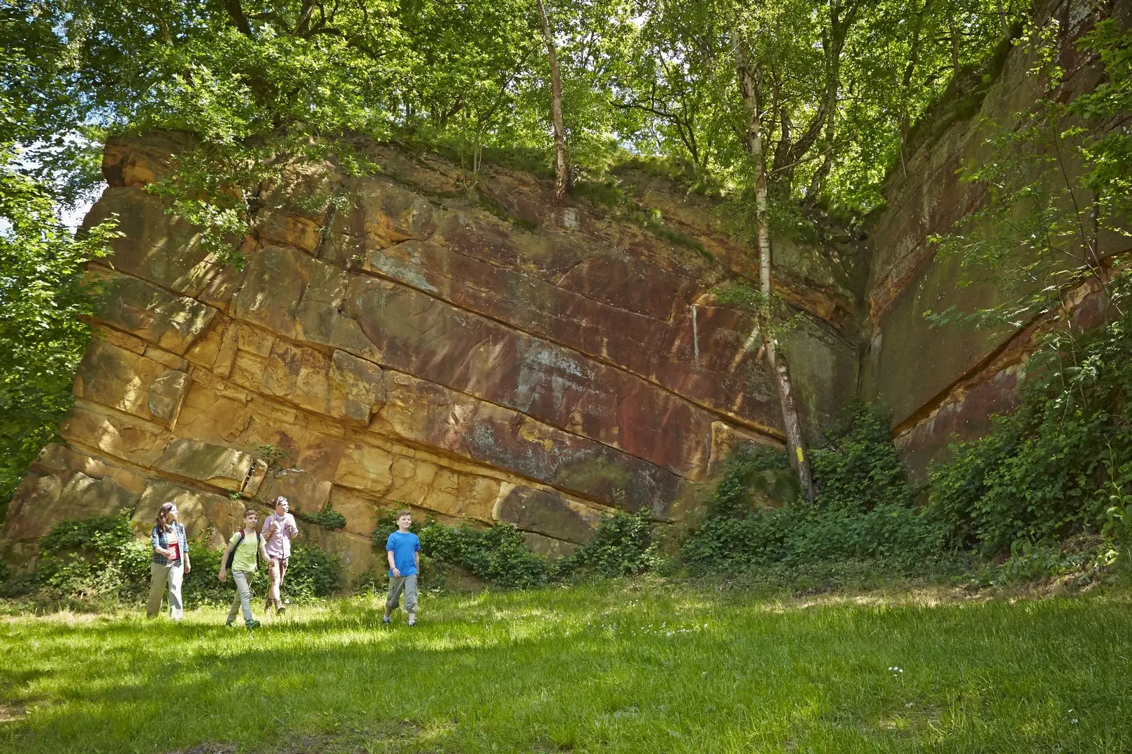 Tijdens de route wandel je langs plekken waar dit bijzondere gesteente nog altijd zichtbaar is. Zo kom je langs oude en nog actieve steengroeves, waar je je makkelijk kunt voorstellen hoe hier eeuwenlang blokken uit het landschap werden gehakt. Een bijzonder punt op de route is het openluchttheater van Bad Bentheim, een indrukwekkende locatie in een voormalige groeve waar in de zomer toneelvoorstellingen plaatsvinden, omringd door steile rotswanden en zingende vogels.