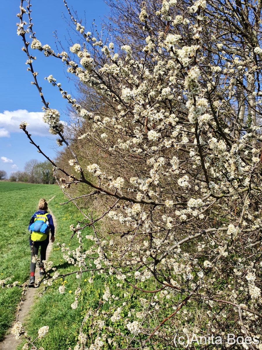 De landschappen met vergezichten zijn een genot om doorheen te slenteren. De weidsheid op de hoogvlakte is prachtig. En in de verte zien we de Schneeberg al verschijnen, daar lopen we vandaag naar toe. Omdat we in het voorjaar wandelen, genieten we van de bloesems die we veel tegenkomen onderweg.