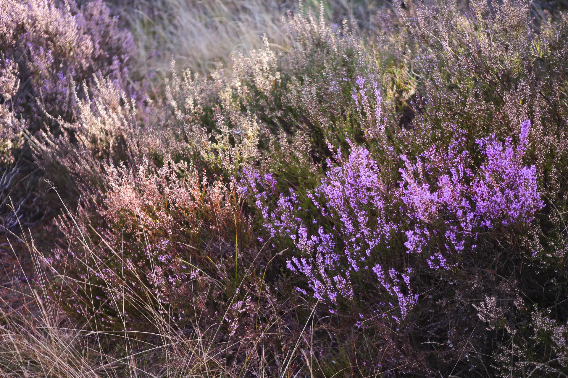 Het landschap links en rechts van ons is prachtig. Het ziet eruit als een steppe-achtige vlakte die zich wijd uitstrekt en is bezaaid met gedroogde heide. Ook al was het hier twee maanden geleden nog helemaal paars, nu begint het landschap langzamerhand geel, rood en oranje te kleuren, met uitzondering van een laatbloeiende heidestruikje.