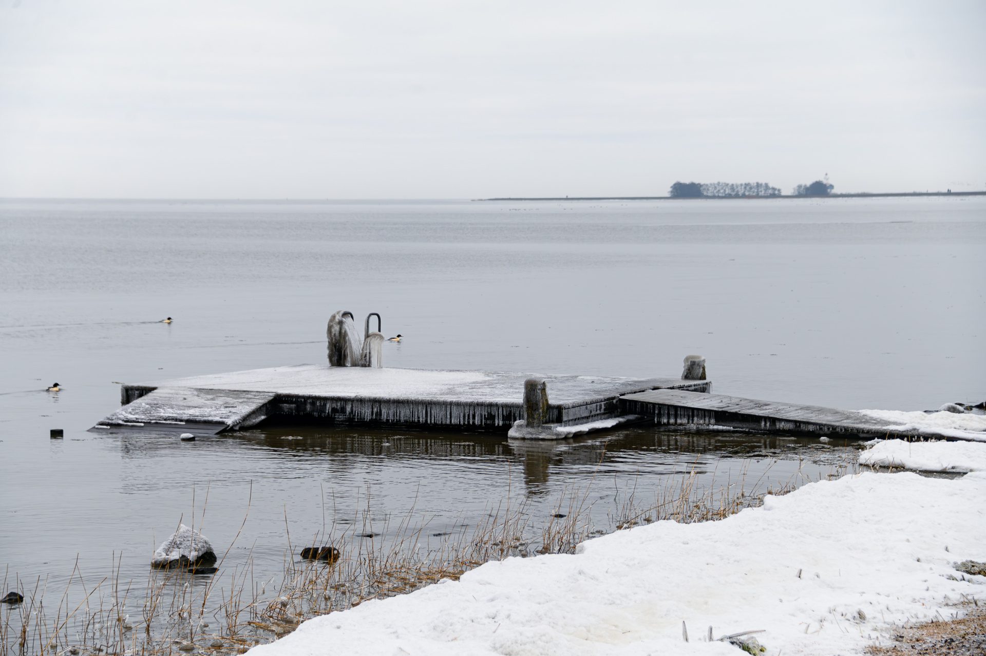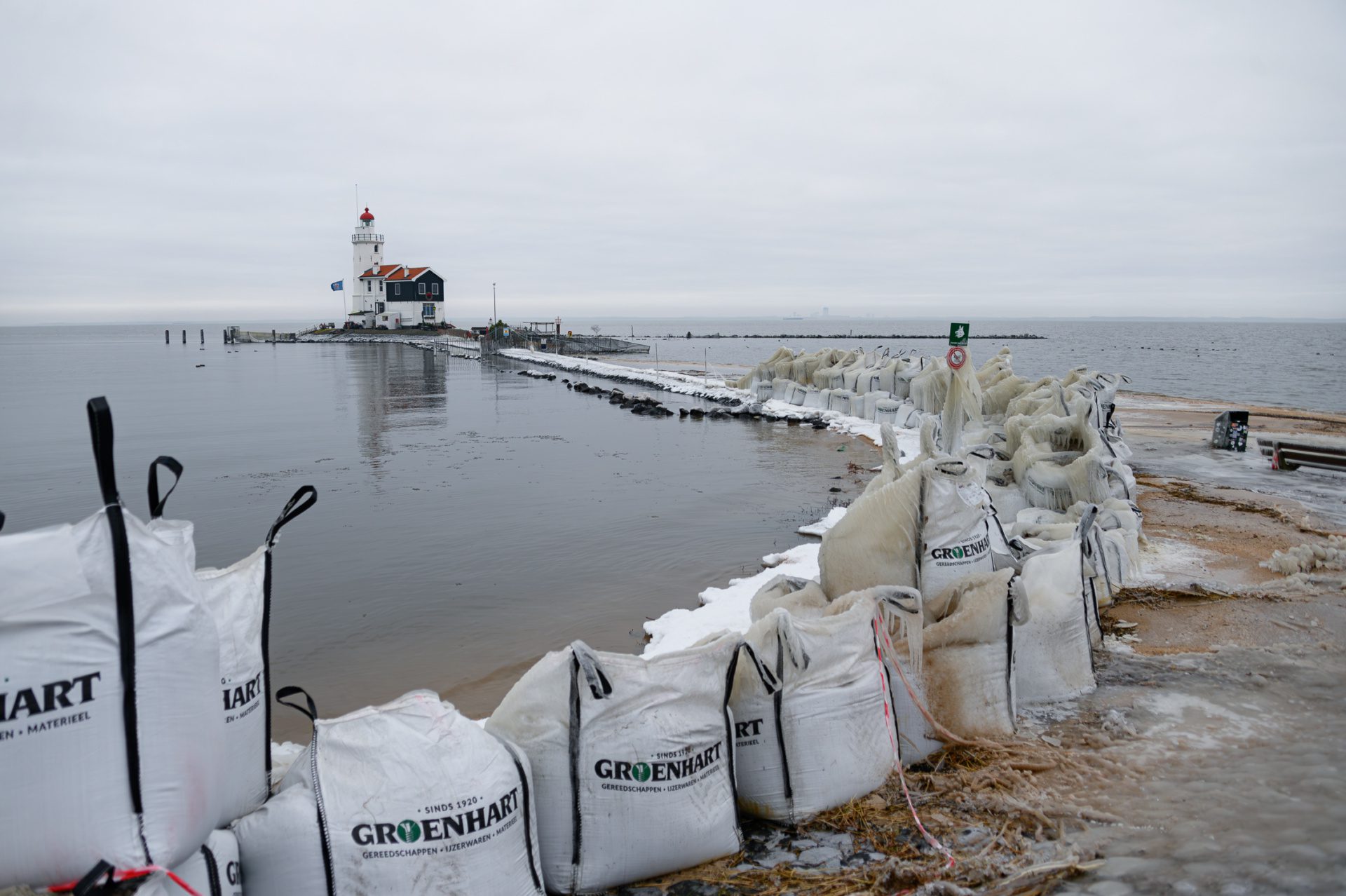 Onderweg loop je langs Nederlands meest gefotografeerde vuurtoren, Het Paard van Marken. Vroeger waarschuwde deze met zijn lichten de scheepvaart, inmiddels is dat overbodig geworden. Wel is de vuurtoren woning bewoond. Het heeft zo hard gevroren de laatste dagen dat het ijs alles bedekt heeft. Er drijven schotsen rond de vuurtoren en langs de kust zijn er prachtige kunstwerken gevormd. In 1971 kruide het ijs van het Markermeer zo hoog op dat de vuurtoren enkele centimeters van zijn plek schoof!