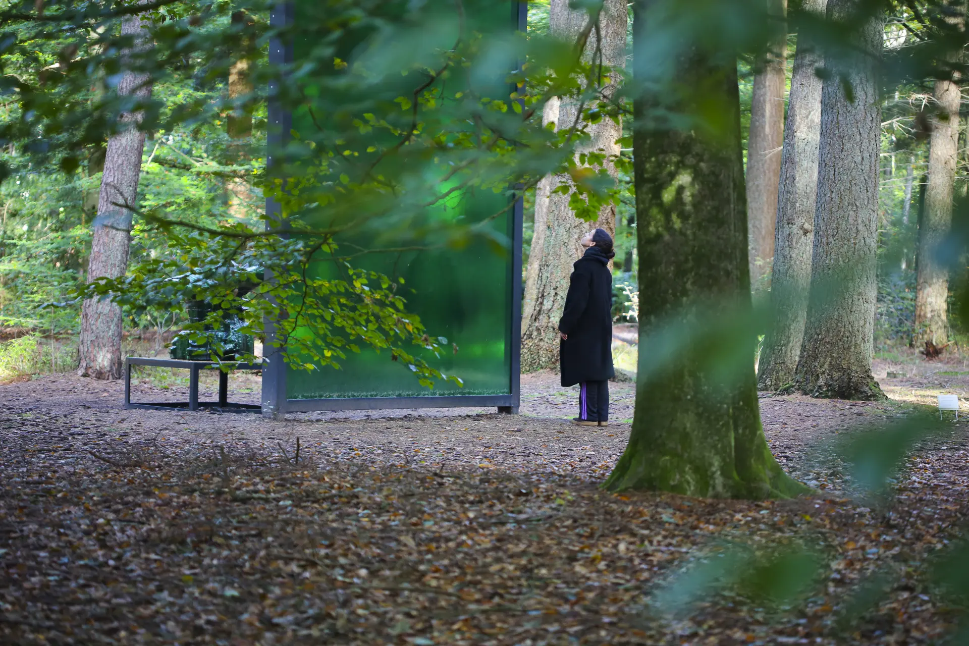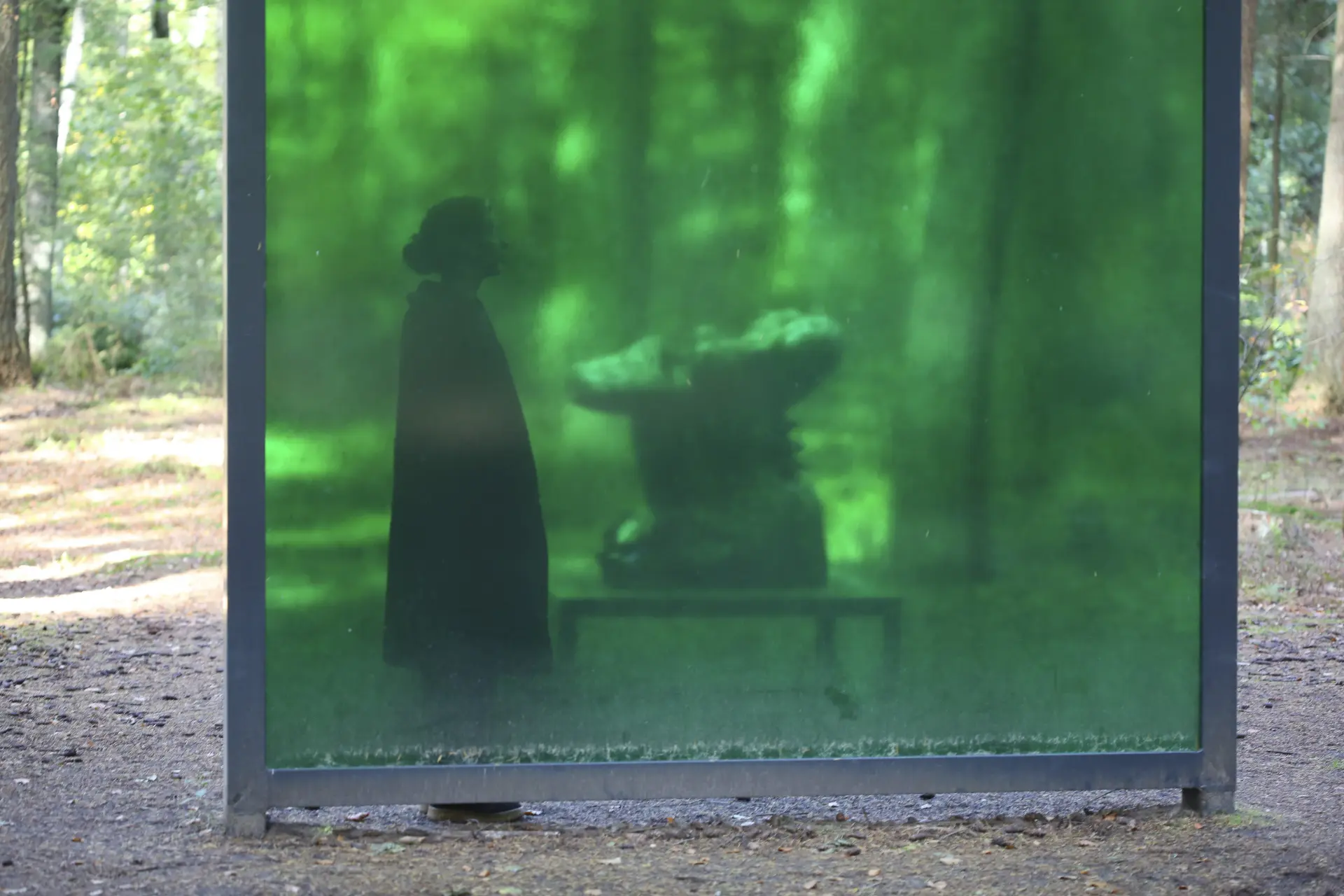 Het meest bijzondere op de hemelse trap na, vinden we het kunstwerk van Marien Schousen “Green Room” uit 2016. Met name door het grote hoge groene achtervlak, wat zowel transparant als spiegelend is. De bomen die je erdoorheen ziet, maken een poëtisch schouwspel op zichzelf. Het leent zich goed om een fotografisch kunstwerk te maken, wat voor mij als fotograaf weer een extra dimensie geeft aan deze natuurbeleving