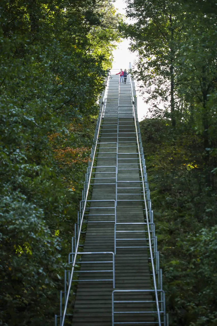 De “Kijkuit Attention” van Krijn Giezen was ontstaan als een conceptueel kunstwerk. Vanuit de beeldentuin van het Kröller-Müller, kun je deze imposante trappen bereiken